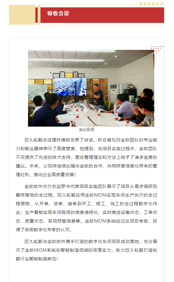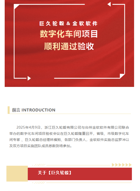 喜報 | 巨久輪轂&金軟軟件"數字化車間"項目順利通過驗收!